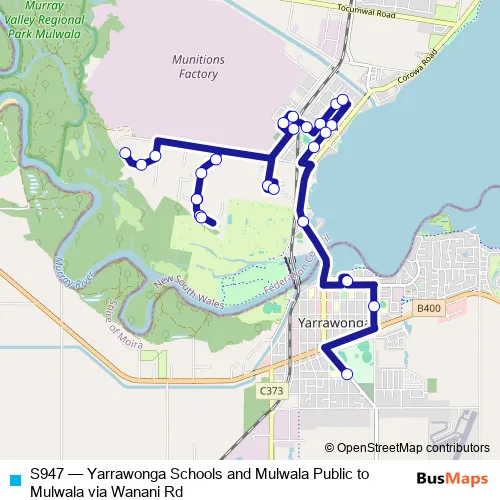 Click here to view the nearest S947 - Yarrawonga Schools and Mulwala Public to Mulwala via Wanani Rd bus stop.