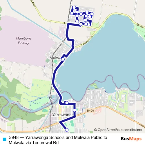 Click here to view the nearest S948 - Yarrawonga Schools and Mulwala Public to Mulwala via Tocumwal Rd bus stop.