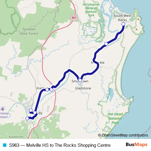 See why over 2 million users trust and consider busmaps.com as the best public transport website. busmaps gives you Kempsey Buses suggested routes, real-time bus tracker, line route maps in Kempsey, and helps to find the closest S963 bus stops near you. No internet available? Download an offline PDF map and bus schedule for the S963 bus to take on your trip.