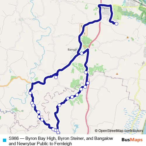 Click here to view the nearest S986 - Byron Bay High, Byron Steiner, and Bangalow and Newrybar Public to Fernleigh bus stop.
