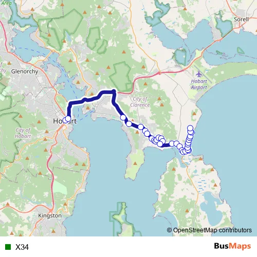 See why over 2 million users trust and consider busmaps.com as the best public transport website. busmaps gives you Hobart Buses suggested routes, real-time bus tracker, line route maps in Hobart, and helps to find the closest X34 bus stops near you. No internet available? Download an offline PDF map and bus schedule for the X34 bus to take on your trip.