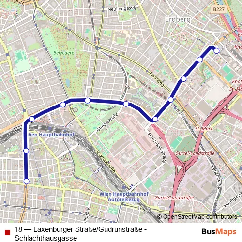 Click here to view the nearest 18 - Laxenburger Straße/Gudrunstraße - Schlachthausgasse tram stop.