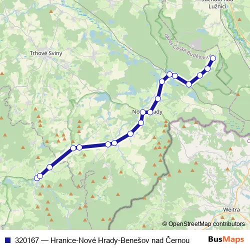 Click here to view the nearest 320167 - Hranice-Nové Hrady-Benešov nad Černou bus stop.