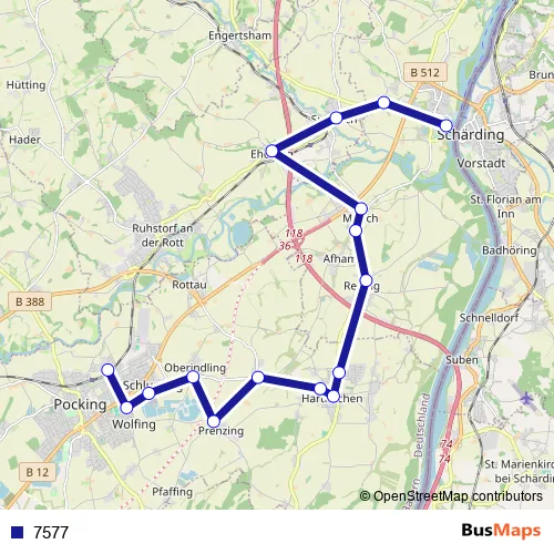 See why over 2 million users trust and consider busmaps.com as the best public transport website. busmaps gives you Schaerding Buses suggested routes, real-time bus tracker, line route maps in Schaerding, and helps to find the closest 7577 bus stops near you. No internet available? Download an offline PDF map and bus schedule for the 7577 bus to take on your trip.