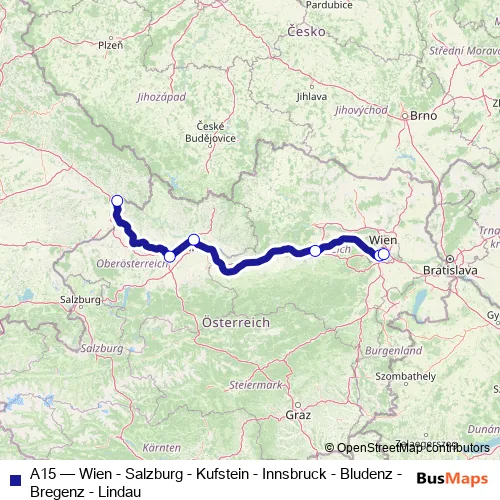 The first stop of the A15 rail route is Passau Hauptbahnhof and the last stop is Wien Hauptbahnhof. A15 (Wien - Salzburg - Kufstein - Innsbruck - Bludenz - Bregenz - Lindau) is operational during everyday.