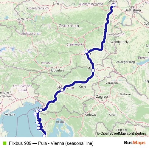 Bus Flixbus 909 - Pula - Vienna (seasonal line): Full Schedule in Porec