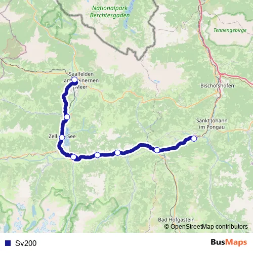 The first stop of the Sv200 bus route is Saalfelden Bahnhof and the last stop is Schwarzach-St.Veit Bahnhof. Sv200 is operational during everyday.