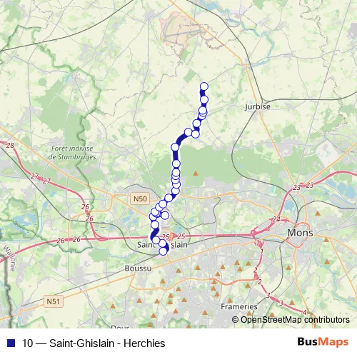 Click here to view the nearest 10 - Saint-Ghislain - Herchies bus stop.