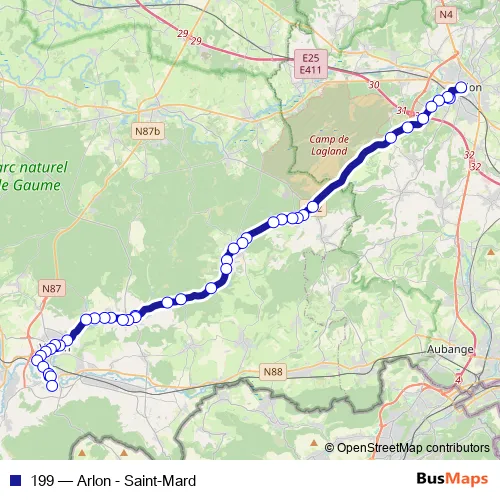 Bus 199 - Arlon - Saint-Mard in Virton: Stops & Timetable