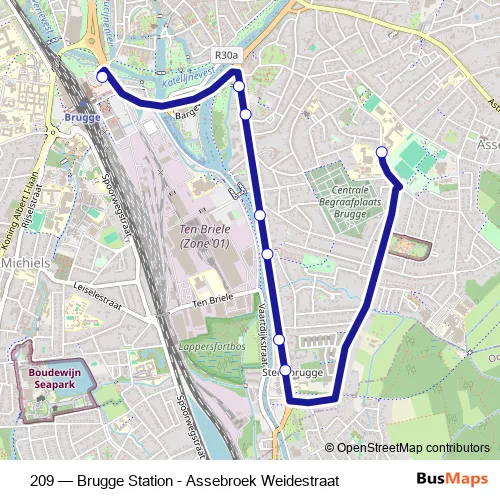 Click here to view the nearest 209 - Brugge Station - Assebroek Weidestraat bus stop.