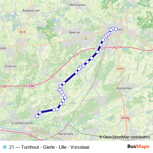 Bus 21 - Turnhout - Gierle - Lille - Vorselaar in Turnhout: Stops & Timetable
