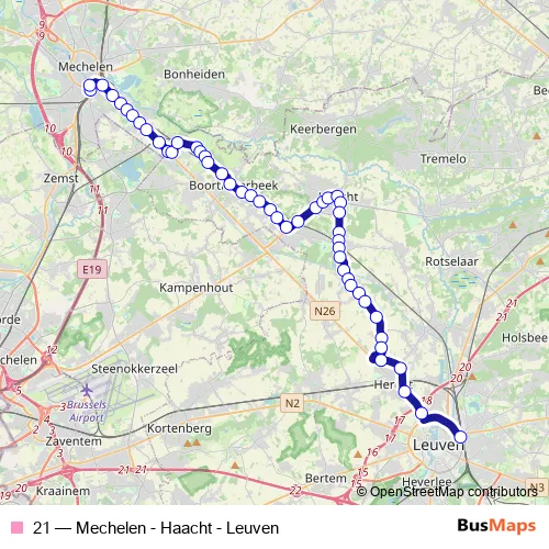 Bus 21 - Mechelen - Haacht - Leuven Schedule in Brussels