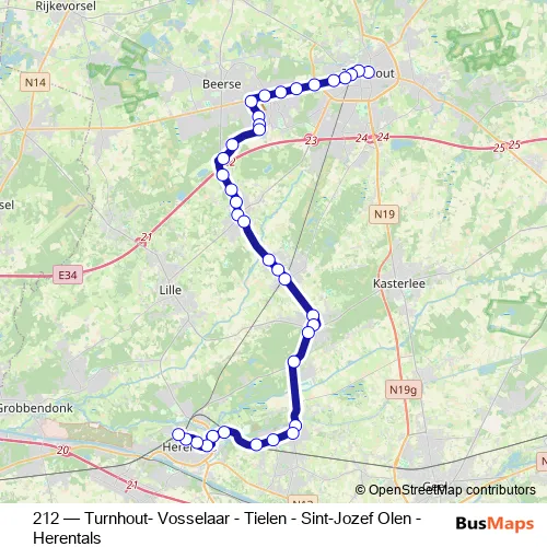 Click here to view the nearest 212 - Turnhout- Vosselaar - Tielen - Sint-Jozef Olen -Herentals bus stop.