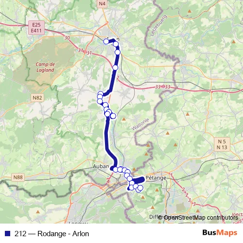 Bus 212 - Rodange - Arlon Schedule in Redange-sur-Attert