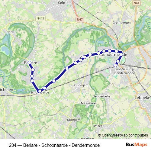 Bus 234 - Berlare - Schoonaarde - Dendermonde in Dendermonde: Stops & Timetable