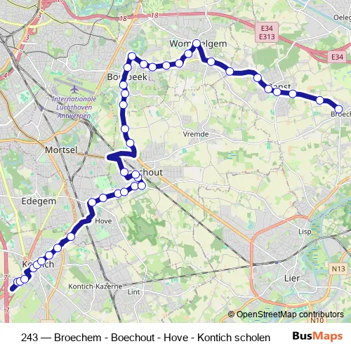 Bus 243 - Broechem - Boechout - Hove - Kontich scholen: Full Schedule in Borsbeek