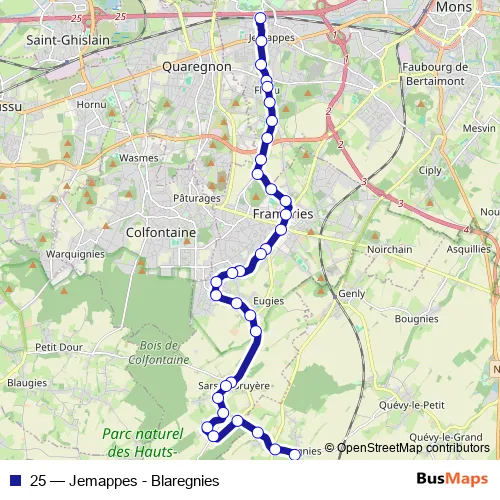 Bus 25 - Jemappes - Blaregnies: Full Schedule in Frameries
