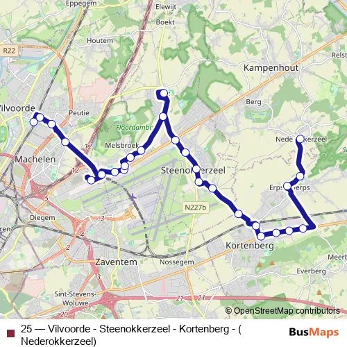 Click here to view the nearest 25 - Vilvoorde - Steenokkerzeel - Kortenberg - (Nederokkerzeel) bus stop.