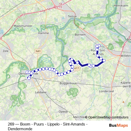 Click here to view the nearest 269 - Boom - Puurs - Lippelo - Sint-Amands - Dendermonde bus stop.