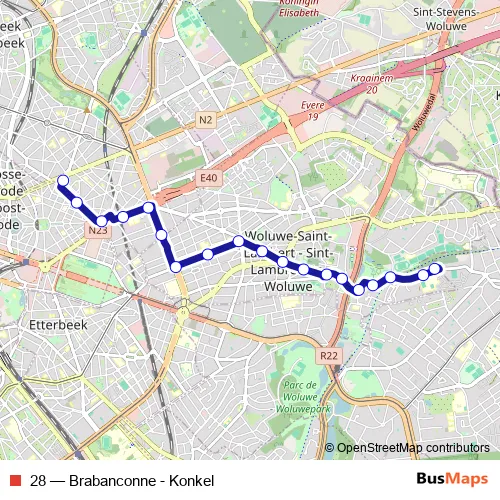 See why over 2 million users trust and consider busmaps.com as the best public transport website. busmaps gives you Brussels Buses suggested routes, real-time bus tracker, line route maps in Brussels, and helps to find the closest 28 bus stops near you. No internet available? Download an offline PDF map and bus schedule for the 28 bus to take on your trip.