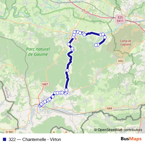 Click here to view the nearest 322 - Chantemelle - Virton bus stop.