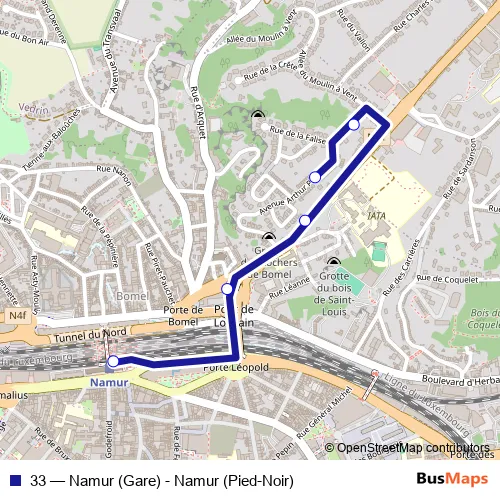 Click here to view the nearest 33 - Namur (Gare) - Namur (Pied-Noir) bus stop.