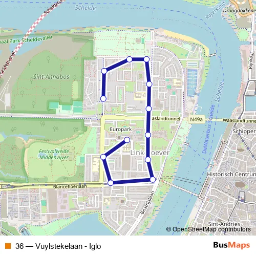 Bus 36 - Vuylstekelaan - Iglo: Full Schedule in Antwerpen