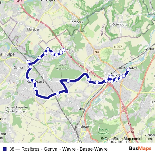 38 Bus - Rosières - Genval - Wavre - Basse-Wavre
