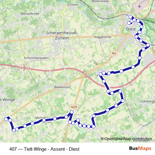 Click here to view the nearest 407 - Tielt-Winge - Assent - Diest bus stop.