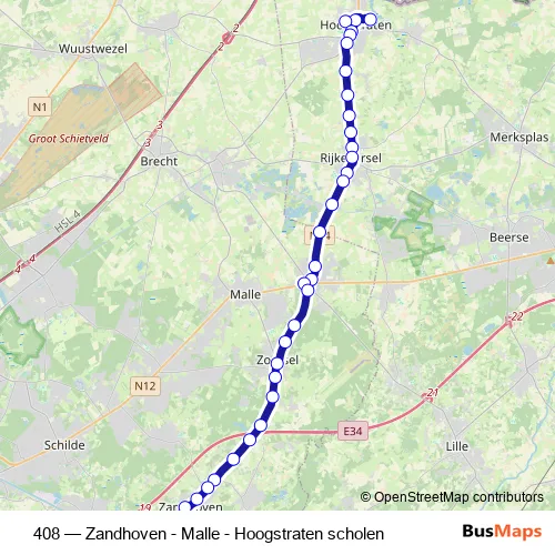 Bus 408 - Zandhoven - Malle - Hoogstraten scholen: Full Schedule in Rijkevorsel
