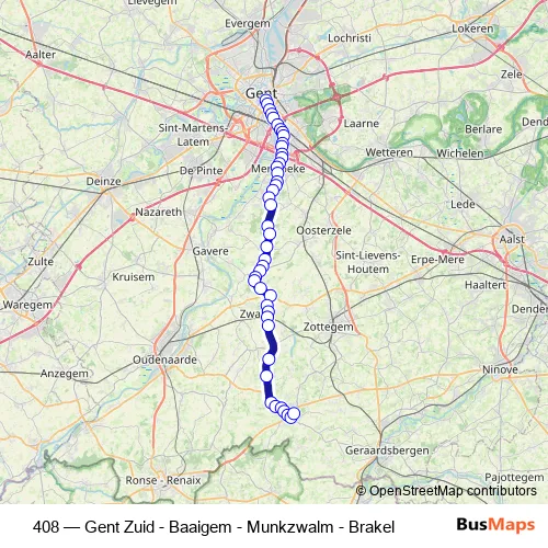 Click here to view the nearest 408 - Gent Zuid - Baaigem - Munkzwalm - Brakel bus stop.