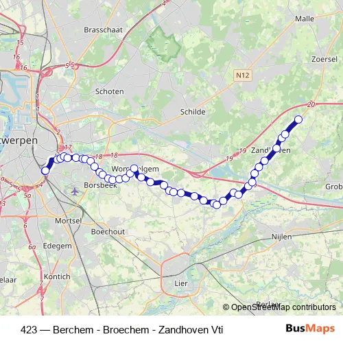 Bus 423 - Berchem - Broechem - Zandhoven Vti: Full Schedule in Borgerhout