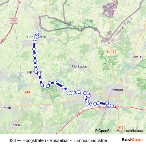 Click here to view the nearest 438 - Hoogstraten - Vosselaar - Turnhout industrie bus stop.