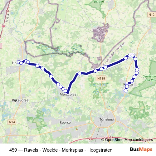 Click here to view the nearest 459 - Ravels - Weelde - Merksplas - Hoogstraten bus stop.