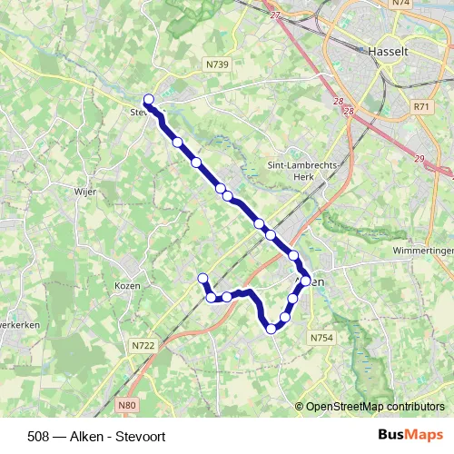 Bus 508 - Alken - Stevoort in Sint-Joris: Stops & Timetable