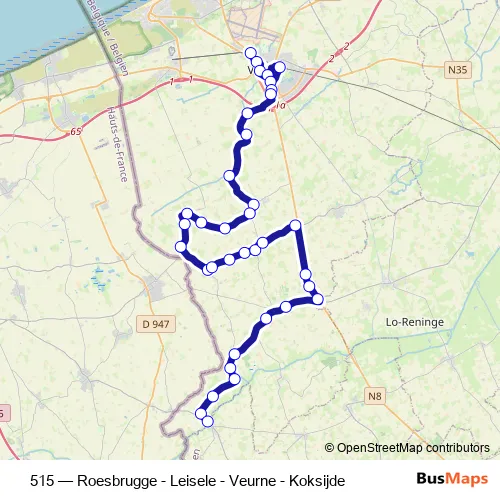 See why over 2 million users trust and consider busmaps.com as the best public transport website. busmaps gives you Veurne Buses suggested routes, real-time bus tracker, line route maps in Veurne, and helps to find the closest 515 bus stops near you. No internet available? Download an offline PDF map and bus schedule for the 515 bus to take on your trip.