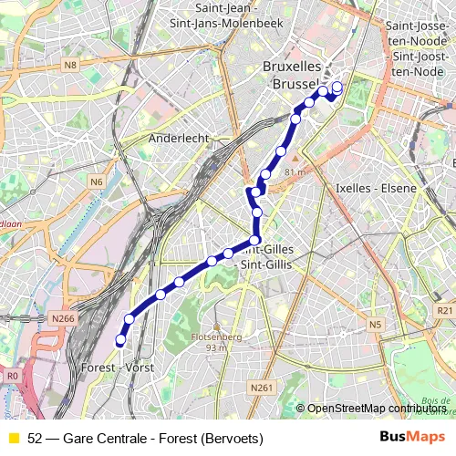 Bus 52 - Gare Centrale - Forest (Bervoets): Full Schedule in Brussels