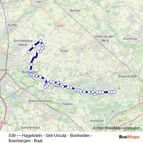 Bus 539 - Hagelstein - Sint-Ursula - Bonheiden - Keerbergen - Baal in Brussels: Stops & Timetable
