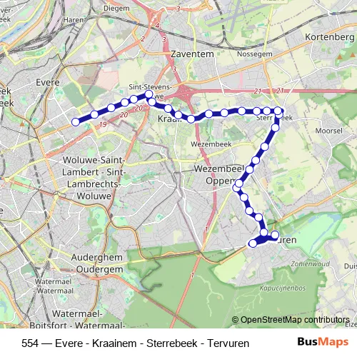 Bus 554 - Evere - Kraainem - Sterrebeek - Tervuren: Full Schedule in Brussels