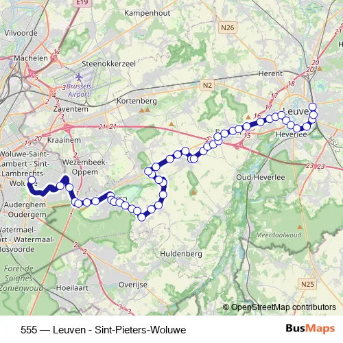Bus 555 - Leuven - Sint-Pieters-Woluwe: Full Schedule in Brussels