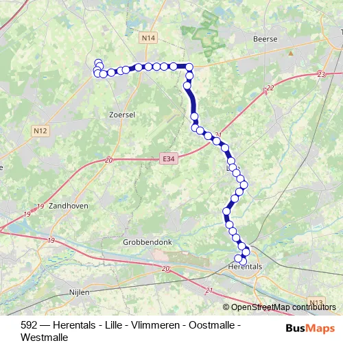 Click here to view the nearest 592 - Herentals - Lille - Vlimmeren - Oostmalle - Westmalle bus stop.