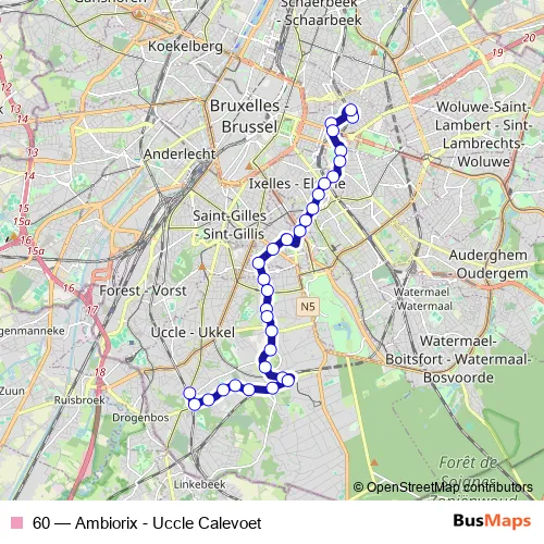 Bus 60 - Ambiorix - Uccle Calevoet in Brussels: Stops & Timetable