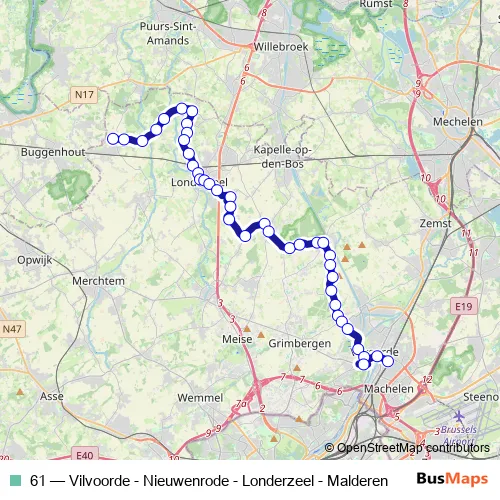 Bus 61 - Vilvoorde - Nieuwenrode - Londerzeel - Malderen in Brussels: Stops & Timetable