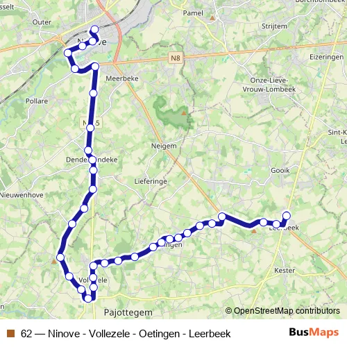 Bus 62 - Ninove - Vollezele - Oetingen - Leerbeek in Brussels: Stops & Timetable