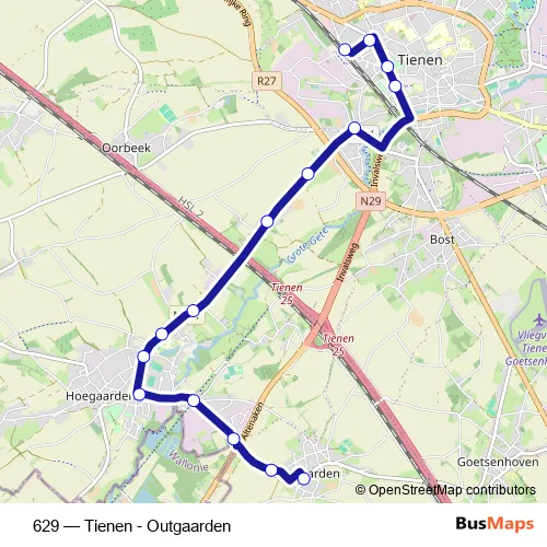 Click here to view the nearest 629 - Tienen - Outgaarden bus stop.