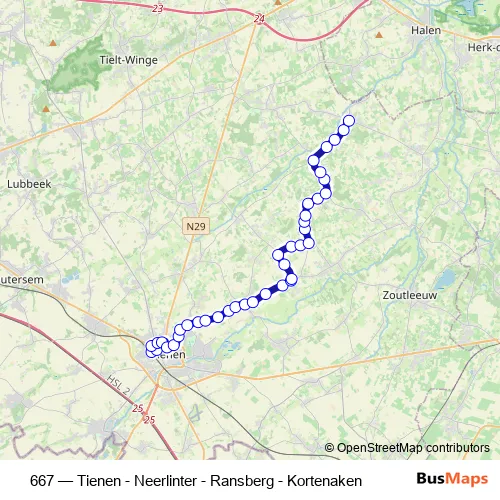 Bus 667 - Tienen - Neerlinter - Ransberg - Kortenaken in Tienen: Stops & Timetable