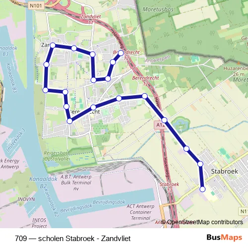 Bus 709 - scholen Stabroek - Zandvliet in Stabroek: Stops & Timetable