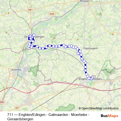 Click here to view the nearest 711 - Enghien/Edingen - Galmaarden - Moerbeke - Geraardsbergen bus stop.
