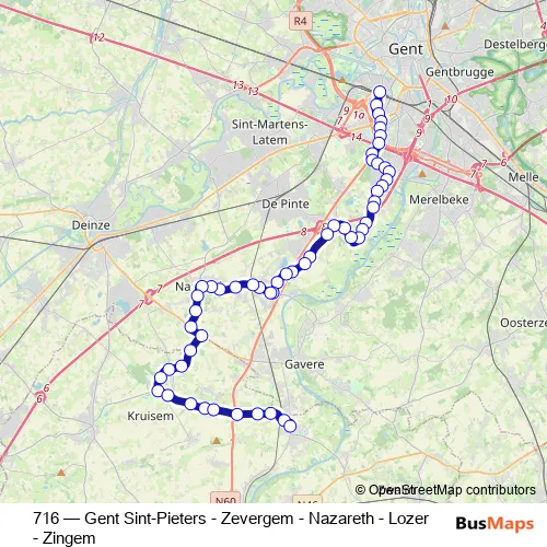 Click here to view the nearest 716 - Gent Sint-Pieters - Zevergem - Nazareth - Lozer - Zingem bus stop.