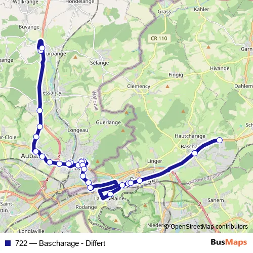 Bus 722 - Bascharage - Differt: Full Schedule in Petange
